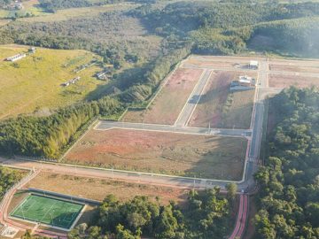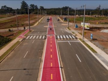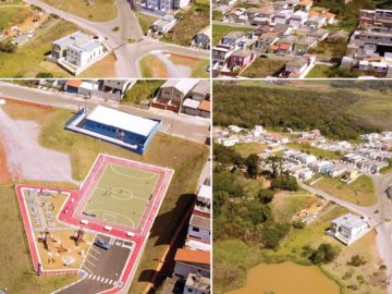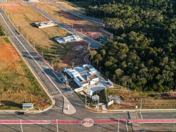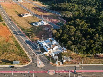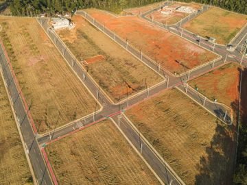 Pega o terreno com as fossas prontas em cada terreno calçadas padrão de 3.50m iluminação pública em led internet fibra água Sabesp energia enel e lazer